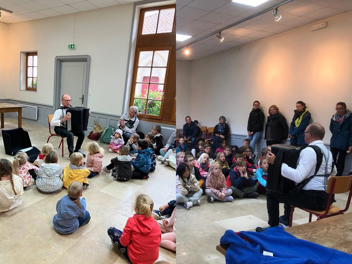 Rencontre pédagogique avec des élèves de l’école Simone Veil de Vigneulles-les-Hattonchâtel et Pascal Contet , accordéoniste.